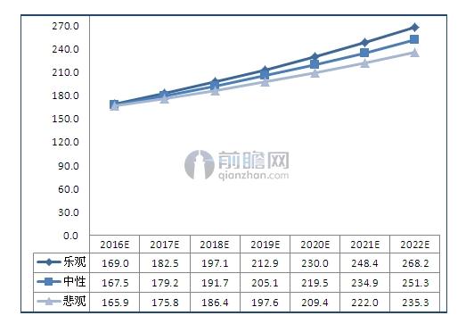 圖表2:2016-2022年中國印染助劑行業(yè)市場容量預(yù)測(單位:萬噸)